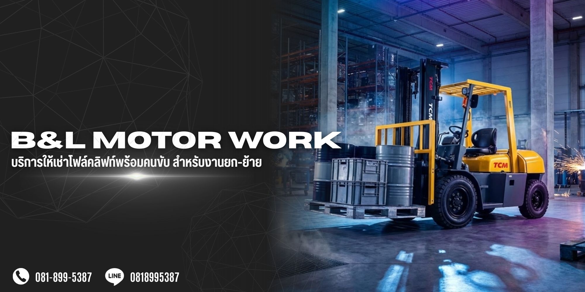 หจก. บีแอนด์แอล มอเตอร์เวอร์ค (B&L Motorworks) ก่อตั้งตั้งแต่ปี พ.ศ. 2535 ด้วยประสบการณ์ยาวนานกว่า 30 ปี เราคือผู้เชี่ยวชาญตัวจริงด้านบริการให้เช่าโฟล์คลิฟท์พร้อมคนขับ สำหรับงานยก-ย้ายทุกประเภท เราเข้าใจว่าในโลกอุตสาหกรรม เวลาคือต้นทุน และความปลอดภัยคือหัวใจสำคัญ "จิตบริการ คืองานที่ดี" คือสิ่งที่เรายึดมั่น
